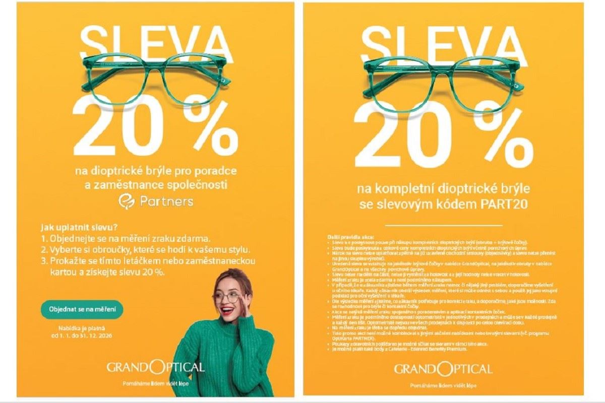 Váš zrak si přeci zaslouží jen to nejlepší! Využijte exkluzivní slevový program ve spolupráci se sítí prodejen Grand Optical. Je pro vás připravená nabídka, díky níž ušetříte a zároveň se o vaše oči postarají zkušení odborníci.