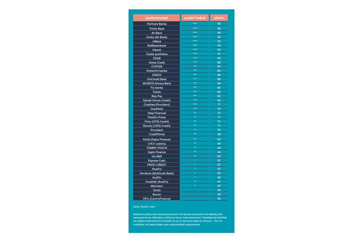 Žebříček nejodpovědnějších poskytovatelů půjček, listopad 2025: